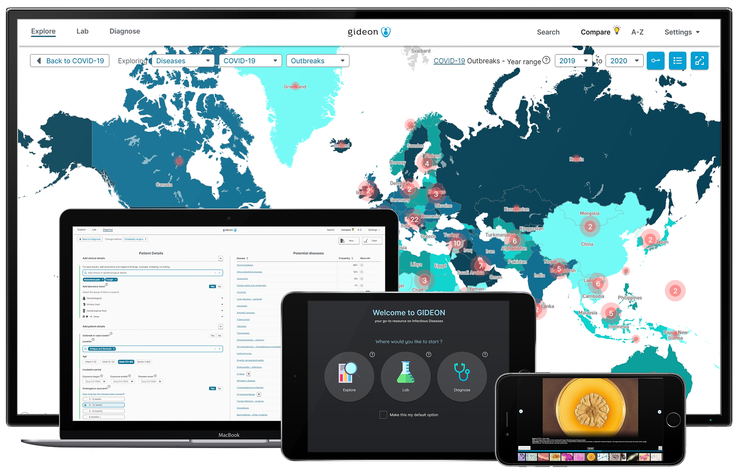 GIDEON application is designed to be fully responsive. Its layout will adjust to the size of your device, so you can consult our database whenever you need it.
